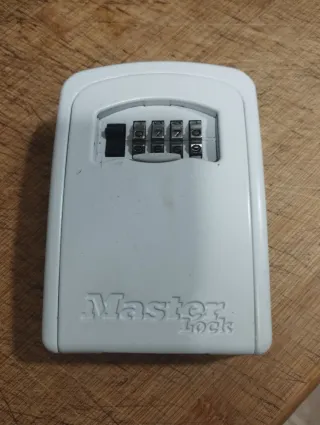 Caja de seguridad de la marca Master Lock con combinación de 4 dígitos. Ideal para guardar llaves de forma segura. - Color blanco. - Diseño compacto.