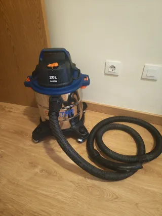 Aspiradora Dexter con una capacidad de 20 litros y una potencia de 1400W. Para aspirar tanto seco como liquido. Muy poco uso. Solo manguera flexible - Depósito de acero inoxidable. - Manguera flexible. - Asa para transporte.