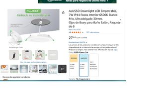 Pack de 6 focos LED empotrables de 7W. Son de luz blanca fría (6500K) y tienen un ángulo de apertura de 120 grados.DISPONGO DE 12 UNIDADES - Potencia: 7W - Color de luz: 6500K (blanco frío) - Ángulo de apertura: 120° - Protección: IP44 - Diámetro de corte: 8,5 cm