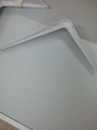 Lote de escuadras metálicas de color blanco. Son resistentes y prácticas para organizar o montar estanterías. - Material: Metal. - Color: Blanco. - Diseño: Forma de L. MEDIDAS.- 19 X 14