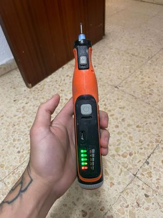 tengo el cable de cargar es una herramienta para manualidades tanto con trabajo con yeso o madera, no es para uso intesos como corte metalicos de chapas o trabajos del genero, caso use para eso la puedes dañar.