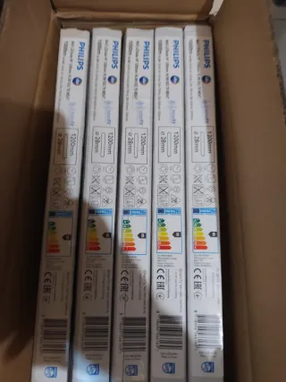 Se vende lote de 14 cajas cada una tiene 10 unidades tubos fluorescentes LED de la marca Philips. - Longitud: 1200mm - Diámetro: 28mm - Modelo: InstantFit - Eficiencia energética: B