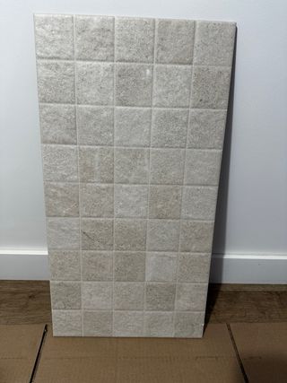 Revestimiento cerámico con diseño de mosaico en tonos beige. Ideal para dar un toque moderno a tus espacios. - Acabado mate. - Textura sutil. - Diseño cuadriculado. comprado el 29/10 para pequeña reforma y al final no se ha usado. 3 cajas con 8 azulejos cada una, unos 4,5 metros. precio original 79€. adjunto ticket de compra