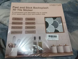Pack de 5 láminas de adhesivos de pared con diseño de mosaico de círculos. Son fáciles de aplicar y mantener. Tengo 7 packs de 5 láminas. 5 euros por pack Comprado para paredes de cocina que al final no hice. Ideal tb para darle otro toque distinto al baño - Diseño: Mosaico de círculos. - Colores: Tonos marrones, grises y verdosos. - Medidas: 26 x 21 cm cada lámina. - Tipo: Autoadhesivo, Peel & Stick. -No es necesario comprar los 7 packs,vendo los que necesites.