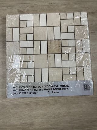 Lote de cinco mallas de Mosaico decorativo de mármol con un diseño moderno y elegante. Perfecto para dar un toque especial a tus paredes o suelos. Medidas de cada malla 30 x 30 cm. Total: 0,45 m2. Grosor: 8 mm. Entrega en mano en Rivas Vaciamadrid