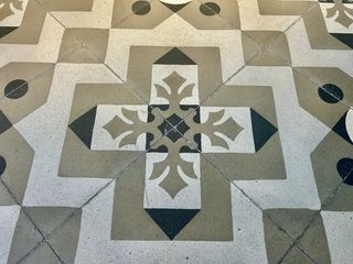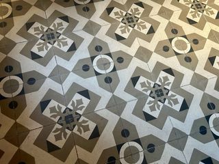 Mosaico hidráulico recuperado con un diseño floral y ornamental en tonos grises. precio según cantidad se hacen envíos