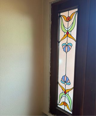 Preciosa cristalera con diseño de mosaico emplomado. - Diseño floral. - Colores: verde, amarillo, naranja, azul y rosa. - 34x1,75CMS, grosor 1,8CMS apx.