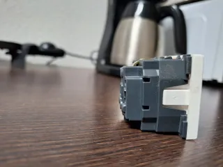 Base de enchufe de la serie Mosaic, en color blanco. - Diseño cuadrado. - Mecanismo de enchufe. - Acabado liso. - Antimicrobiano. - 9und, 2euros cada uno.