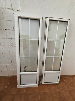 Se vende ventana de pvc blancas con cristal. Medidas exterior de marco: 221x130 Medidas exterior de hojas: 194x64 - Marco de aluminio blanco. - Cristales divididos en paneles. - Parte inferior opaca.