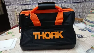 Práctica bolsa de herramientas de la marca THORK. Es de color negro con detalles en naranja, nueva sin estrenar, mas herramientas en mi perfil. - Compartimentos exteriores. - Asas de transporte resistentes. - Base reforzada.
