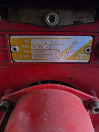 Moto-bomba Campeón At-30 usada con 1,5 cv y salida de bomba de 1", está un poco baja de motor pero arranca. Perfecta como motor para repuestos ya que el fabricante tiene unos precios disparatados y pocas existencias. Envío a toda España y atiendo whatsapp (664348273).