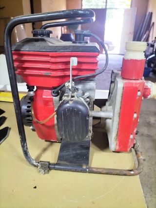 Motobomba de agua antigua, ideal para proyectos o coleccionistas. - Motor de combustión. - Depósito de combustible. - Conexión para manguera.
