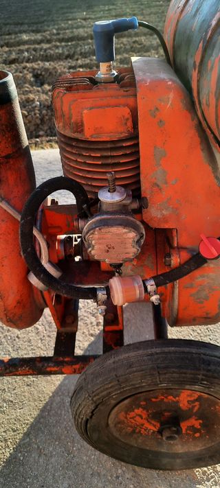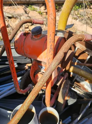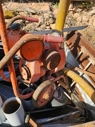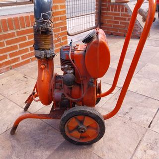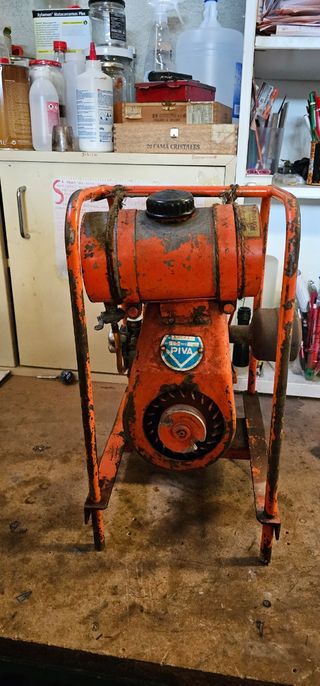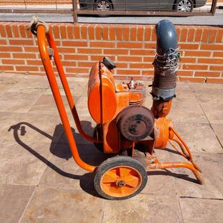 Se vende motobomba de la marca Piva. Es una pieza antigua, con señales de uso visibles en su estructura naranja. - Marca: Piva - Tipo: Motobomba - Color: Naranja - Dispone de ruedas para facilitar su transporte.