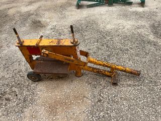 Herramienta para la colocación de bordillos. - Estructura metálica verde. - Diseño robusto para facilitar el trabajo.