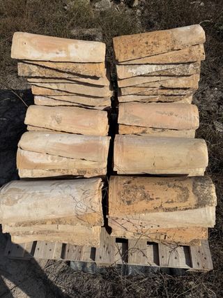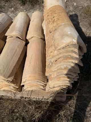 Conjunto de tejas cerámicas curvas, también conocidas como tejas de cañón. Son piezas antiguas con un estilo rústico. - Material: Cerámica. - Tipo: Curva (de cañón). - Estilo: Antiguo. aptas para rehabilitación 0’80€ la unidad