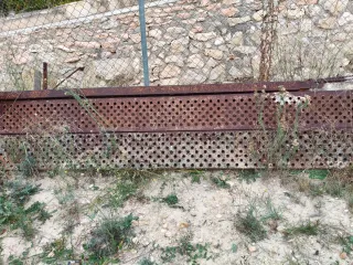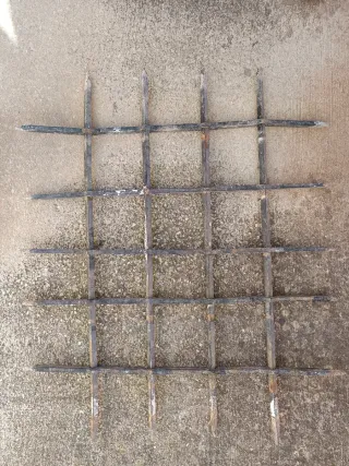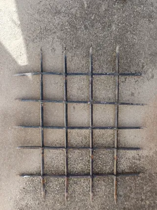 Reja antigua de hierro forjado, ideal para decoración o proyectos de restauración. - Necesita de unos puntos de soldadura. - Fabricada en hierro. - Diseño de barras cuadradas.