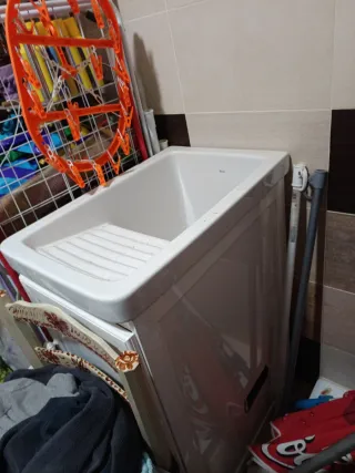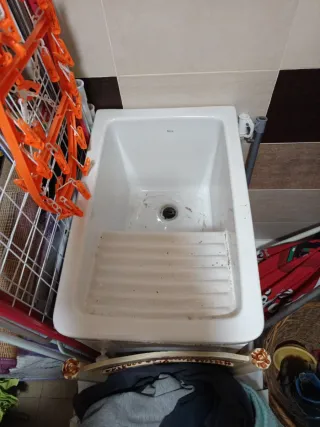 Pila de cerámica. Ideal para lavadero o cocina. - Con escurridor. - Material: Cerámica. - Color: Blanco. - SIN MUEBLE.