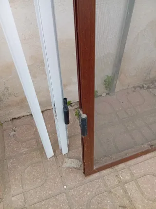 Puerta mosquitera con marco de aluminio. Medidas 202 x 83 - Marco de color marrón. - Malla de protección. - Incluye tirador.