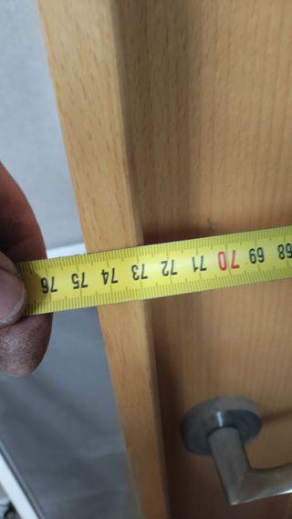 Piezas de madera para tapar juntas de puerta. 12 largos y 6 cortos. Tienen el corte de inglete. - Material: Madera Roble. - Color: Tono miel. 2'12 de largo y 9 de ancho. Los de arriba son de 90cm No sé puede enviar porque es largo.