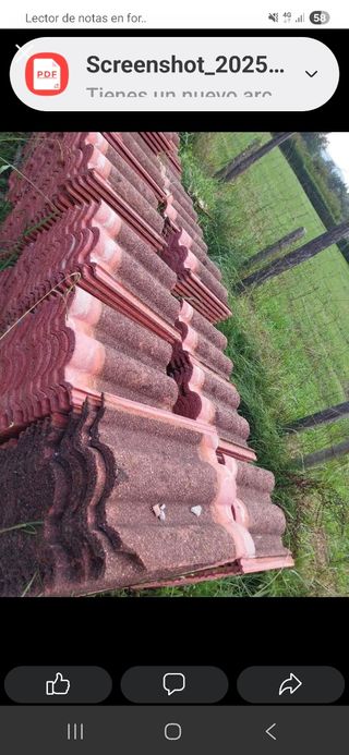 Tejas para tejado, usadas pero en buen estado. Son de color rojo y tienen una forma ondulada. Se venden en paquetes. - Aproximadamente 50 tejas. - Color rojizo. - Material resistente.