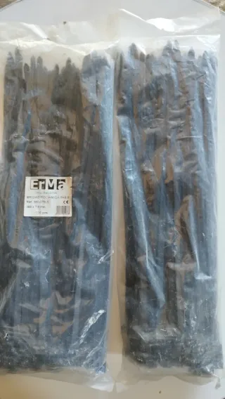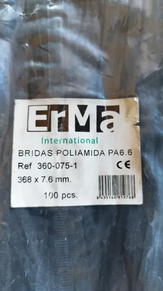 2 Pack de 100 bridas de poliamida PA6.6 de la marca ERMA International. - Color: Negro - Medidas: 368 x 7.6 mm - Referencia: 360-075-1 - Certificación CE