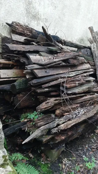 Leña ideal para tu chimenea o para quemar. Regalo. Hay un poco de todo, vigas cortadas, sin cortar, de pino, roble, etc.. Tabla y tablon de diferentes tamaños, nueva y vieja. Solo recogida.