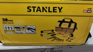 Maletín de herramientas Stanley con 38 piezas. Incluye una bolsa de transporte. - Nivel con burbujas para ángulos de 0°, 45° y 90°. - Cinta métrica Tru-Zero®. - Mango de doble agarre. - Martillo. - Alicates y destornilladores. Está sin abrir