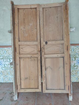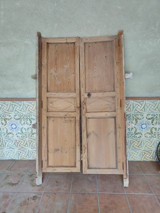 Conjunto de puertas antiguas de madera, ideales para proyectos de restauración o decoración rústica. - Material: Madera maciza. - Diseño clásico con paneles. - Acabado en tonos marrones y claros. 90unidad
