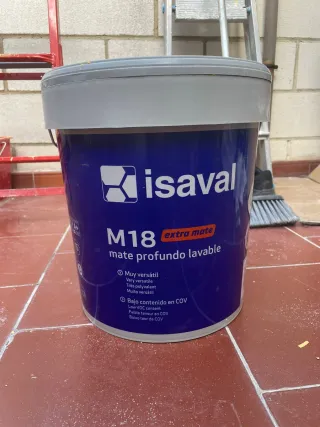 Bote de pintura para estrenar Isaval M18 de acabado extra mate y lavable. Ideal para interiores. - Muy versátil. - Bajo contenido en COV. No disponible envío