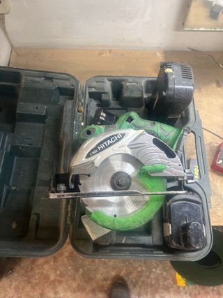 Sierra circular Hitachi en su maletín de transporte. Incluye dos baterías y cargador. - Sierra circular modelo C18DL. - Dos baterías de litio. - Cargador de baterías.