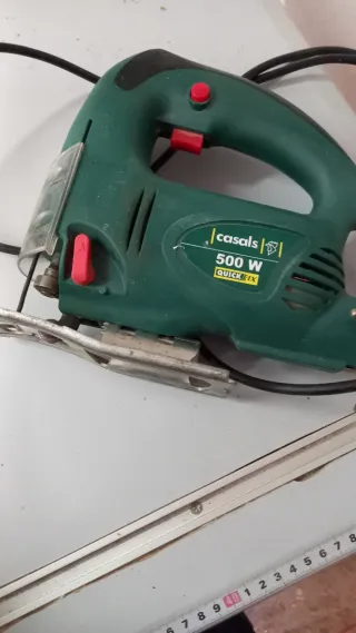 Sierra de calar Casals VC500PE en color verde. Funciona perfectamente lo única que tiene la base torcida. - Potencia: 500W. - Voltaje: 230V. - Velocidad sin carga: 0-2800 rpm. - Capacidad de corte en madera: 60mm. - Capacidad de corte en metal: 10mm.