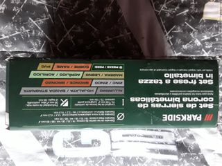 Set de sierras de corona bimetálicas de la marca Parkside. Incluye diferentes tamaños para taladros y atornilladoras. Esta en su caja sin habrir, completamente nuevas. - Sierras de corona bimetálicas. - Aptas para taladros portátiles y atornilladoras recargables convencionales. - Set frese a tazza in bimetallo. - Adatte per tutti i trapani manuali e i trapani ricaricabili di uso comune.