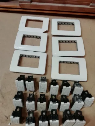 Llaves luz antiguo de la marca Simón. buen estado. Producto reciclado de vivienda usada. - Marca: Simón - Color: Blanco - Tipo: Interruptor, conmutador, cruce, pulsador, enchufes, cortocircuitos, salida de hilos, placas de 1, 2, 3 y 4 elementos, placas ciegas. Precio por pieza o unidad. Nota: 1 Interruptor =1 pieza 1 conmutador =1 pieza. 1 cruce =1 pieza 1 enchufe =1 pieza Cada placa =1 pieza, etc etc. Envío mínimo 5 piezas (No se regalan se venden). Absterse pelad@s y Mareant@s.