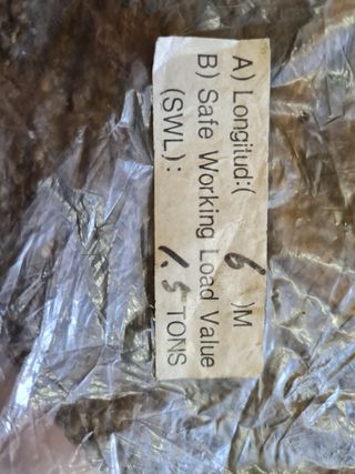Se vende juego de eslingas totalmente nuevas para carga y descarga en gruas de 6 metros y 1,5 toneladas. El precio es por el juego.