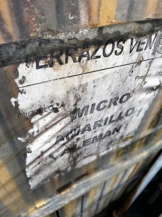 Plaquetas amarillas 5€ unidad o 200€ palet completo. Total 19 m2 y 40m lineales de rodapie.
