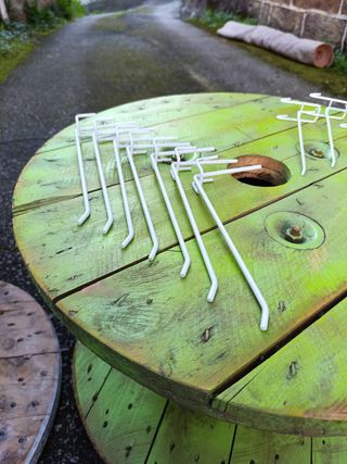 Ganchos pared de rejilla para exposición de artículos en tienda o comercio 7 ganchos de 22 cm 3 ganchos de 21 cm