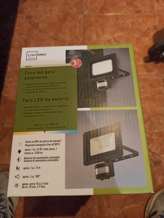 Nuevo en caja, sin usar. Foco LED de bajo consumo, ideal para jardines, patios, entradas y terrazas. Con sensor de movimiento orientable de hasta 12m y ángulo de detección de 180°. Carcasa de aluminio con protección IP44 contra agua. Ahorro del 80% en energía comparado con bombillas tradicionales. Luz de 4000K (blanco neutro) y 2250 lúmenes. Durabilidad de 30.000 horas. iluminación exterior, detector de movimiento, lámpara LED, foco con sensor, luz de seguridad, Philips Hue, Osram, Schneider Electric, lámpara IP44, reflector LED, luz solar, proyectores LED, luz automática, energía eficiente, luces para jardín.