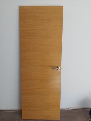 Puerta de madera con acabado liso y moderno. Ideal para interiores. -Son nuevas, se quitaron de un piso nuevo para suprimir estancias. - Color: Madera clara. - Material: Madera chapada - Diseño: Liso con veta horizontal. - Incluye manilla plateada. -Venta en persona -50Euros cada una