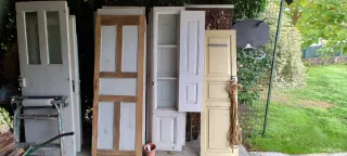Conjunto de puertas de madera maciza de castaño, listas para ser restauradas. La madera se encuentra en buen estado. - Madera maciza. - Madera de castaño. - Ideal para proyectos de restauración. Tengo de distintas medidas, para más información consultarme sin compromiso, un saludo 🫡 Según la puerta varía el precio, hay alguna de 8cm de grosor.