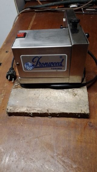 Afilador de cuchillos Sharp3 con cinta de lija a 230V. Puesto a punto y limpio, precio negociable. - Fabricado en acero inoxidable. - Incluye perillas de ajuste. - Interruptor de encendido/apagado.