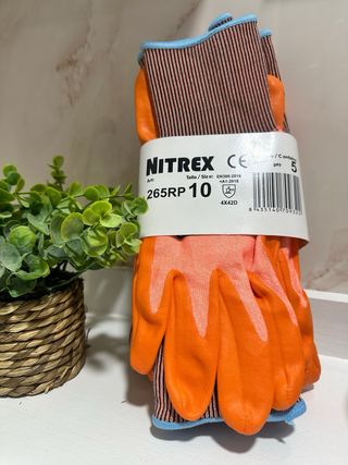 Pack de 5 pares ( NUEVOS) • Recubrimiento de espuma de nitrilo: excelente agarre en seco y húmedo • Resistentes a cortes: mayor protección en tareas exigentes • Transpirables: permiten trabajar cómodamente durante horas • Sostenibles: fabricados con materiales respetuosos con el medio ambiente • Talla 10 (XL): perfectos para manos grandes