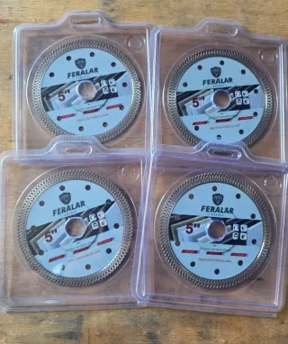 Se venden dos discos de diamante de 125 mm para corte continuo. Están prácticamente nuevos. - Diámetro: 125 mm - Uso: Corte continuo - Tipo: Disco de diamante ranurado Perfecto amoladora radial mini: Hilti, Makita, Bosch, Dewalt, Husqvarna, Tirolit, Rubi, Stayer.