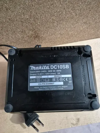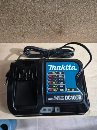 Cargador de batería Makita modelo DC10SB. - Compatible con baterías Li-ion de 10.8V a 12V (máx.). - Indicadores LED de carga.