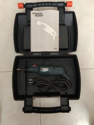 Multiherramienta Black & Decker en su maletín original. - Incluye manual de instrucciones. - Herramienta con cable de alimentación. - Maletín de transporte negro.