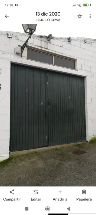 Puerta de garaje en buen estado, lista para ser recogida en el lugar. - Medidas: 3,07metros de ancho por 2,60 metros de alto. - Color: Verde oscuro. - Material: Metal. - Tipo: Puerta seccional.
