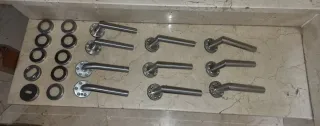 Conjunto de manillas de acero inoxidable, ideales para puertas. - Material: Acero inoxidable. - Diseño moderno y elegante. - Acabado pulido.
