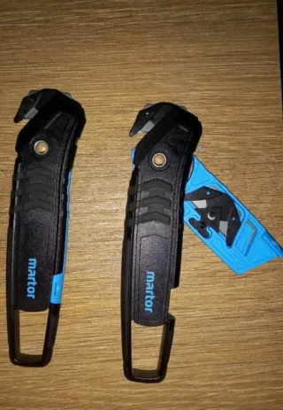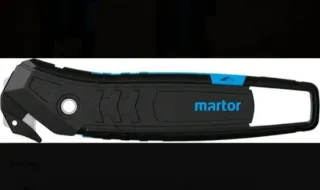 Cúter de seguridad Martor Secu Max 350. Diseñado para un corte seguro y eficiente. - Mango ergonómico de plástico reforzado. - Hoja retráctil automática. - Incluye hoja de corte de repuesto