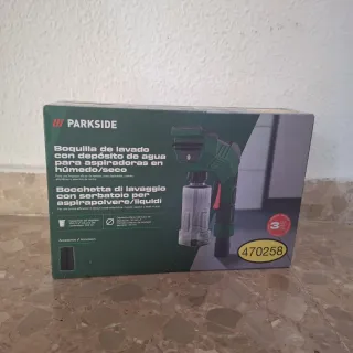Boquilla de lavado con depósito de agua para aspiradoras en húmedo/seco Para una limpieza eficaz de textiles como tapicerías, cojines, alfombras o asientos de coche / 3 en 1 Pulverización. cepillado y aspiración Aplicación uniforme del producto de limpieza gracias al depósito de agua y a la función de pulverización / Incorporación del producto de limpieza y eliminación de la suciedad persistente con los cepillos integrados Eliminación de la suciedad y los restos de producto de limpieza mediante la función de aspiración / Tapa de la carcasa grande y transparente para inspeccionar durante el funcionamiento / Montaje sencillo