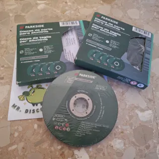 2 Pack de 4 discos de corte para aluminio de la marca Parkside. - Diámetro: 115 mm. - Grosor: 1,2 mm. - Diámetro interior: 22,23 mm. - Velocidad máxima de giro: 13.300 rpm / 80 m/s.