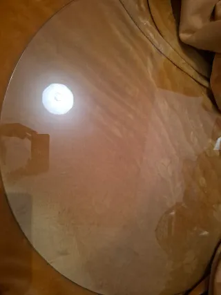Tablero circular de madera con un sobre de cristal. - Diámetro de 90 cm. - Ideal para mesas de comedor o de centro.
